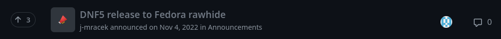| GitHub Repo | https://github.com/rpm-software-management/dnf5 |